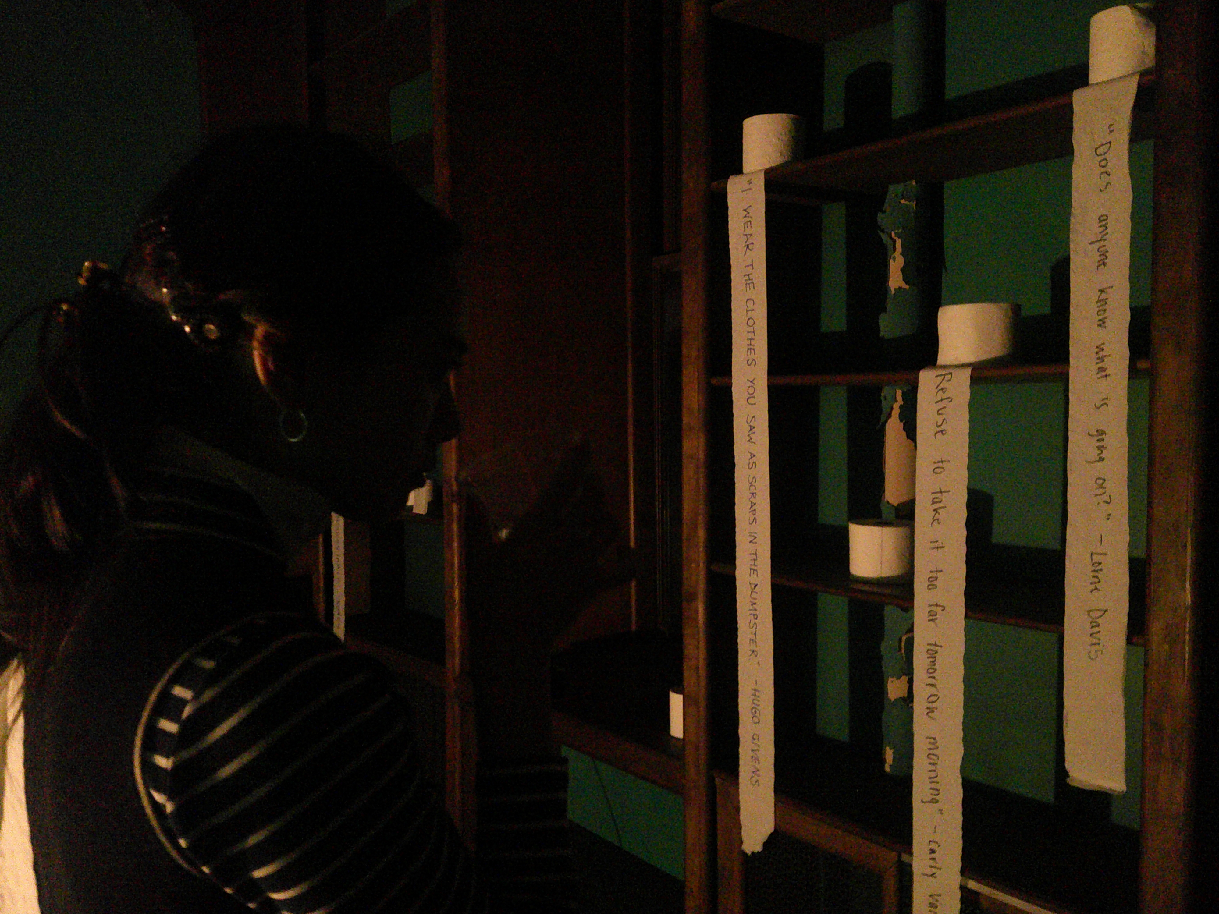 Editor's note: Must of Davis' reading was sadly rendered unintelligable due to a violent coughing fit. That which was able to be transcribed appears below. A * denotes a single cough. Longer or more complicated coughs that bleed into eachother and thus cannot be easily counted are denoted in writing.